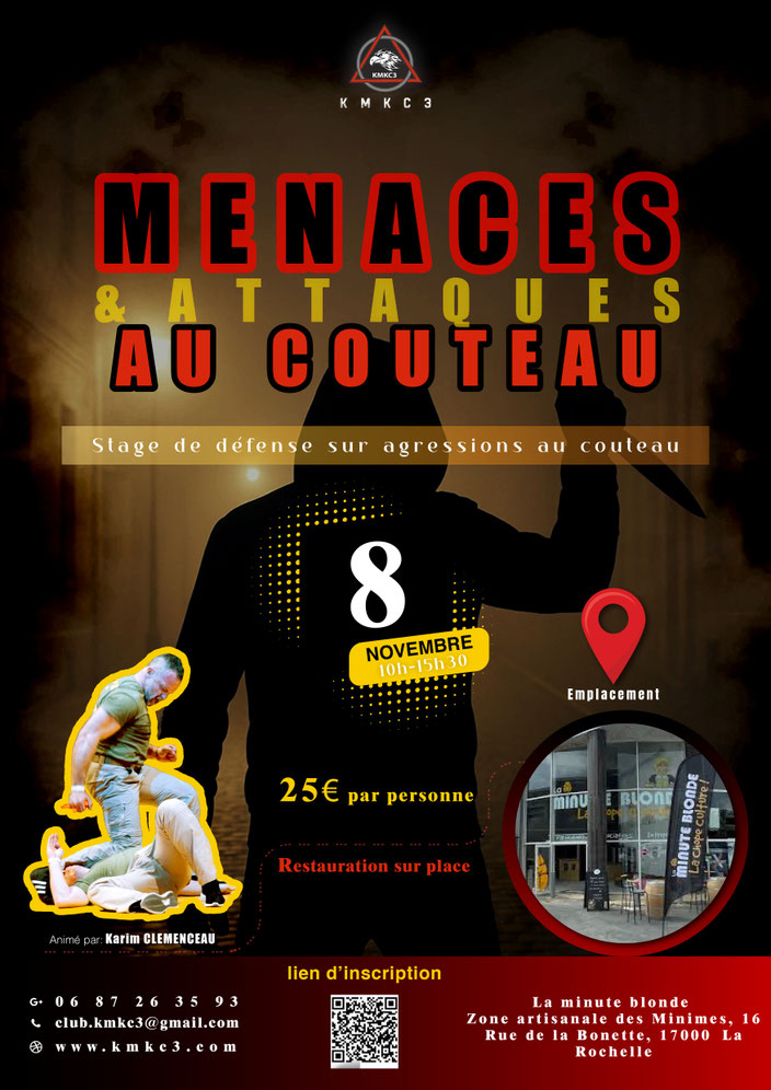 Nous avons le plaisir de vous annoncer notre prochain stage de Krav Maga : “Défense sur menaces et attaques au couteau”